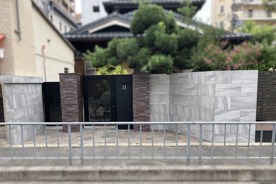 旧門扉は宅配ボックス付きのシステム門扉に変えてより機能的に